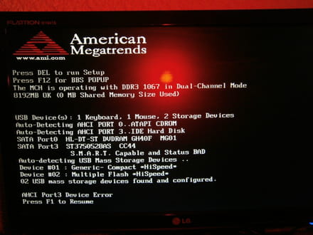 J'espère que ça peut t'aider, par contre pour cet écran de démarrage avec F1 je ne peux pas t'aider :)