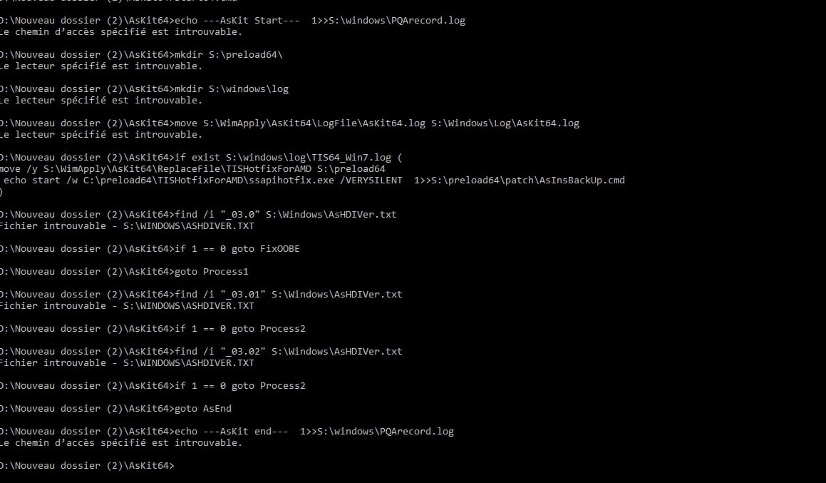 Si çà donne rien de bon il va falloir creuser... Je n'ai pas suffisamment de connaissances dans le domaine de déploiement des images Windows. Une personne à réussie avec cette méthode copier/coller depuis le Net ( en gras ce que j'ai ajouté) :