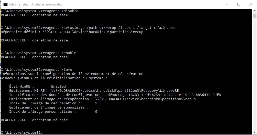 reagentc /setosimage /path s:\recup /index 1 /target c:\windows