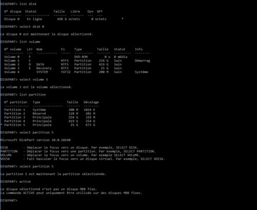 DISKPART> select partition 2 (j'ai choisi la partition 2)