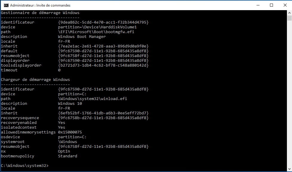 -j'ouvre l'invité de commande c'est possible d'y acceder avec le boot de windows 10