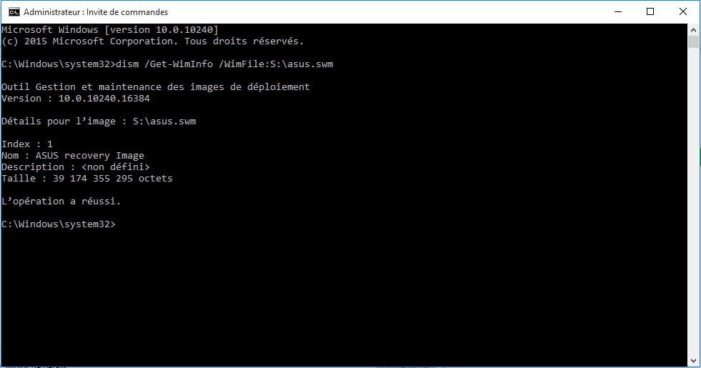 Je ne connais pas assez le processus recovery ASUS, des fichiers ont été supprimés suite à la mise à jour vers Win 10. Le processus ne peut plus fonctionner.