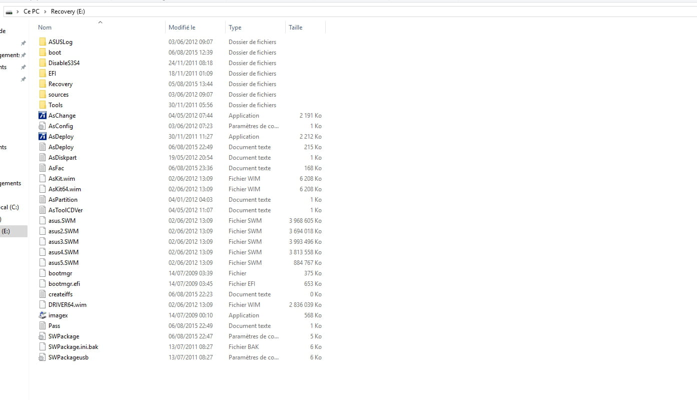Dans ce dossier source il devrait y avoir l'ensemble des fichiers swm ' asus.swm, asus.swm, asus2.swm, etc.' Attention! Le contenu de chacun de ces fichiers swm que tu peux extraire avec 7Zip 'il supporte ce type de fichier swm'.