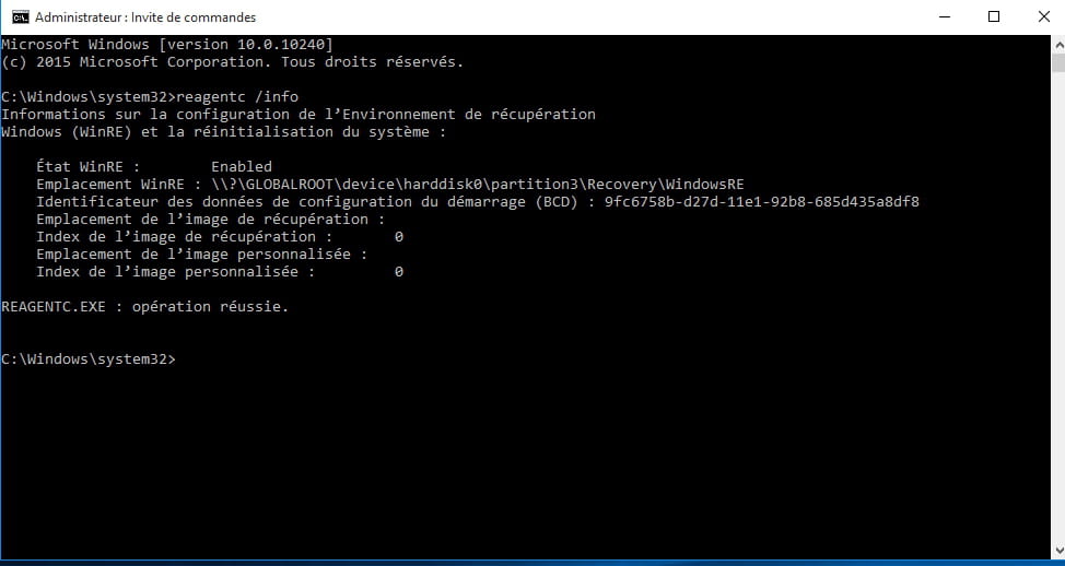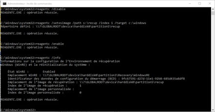 3. Reagentc /info confirme que le lien vers la partition de récup a sauté. On verra ce soir les manipulations à faire.