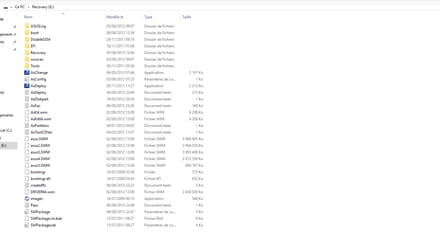 Pour compléter au cas ou tu ne pourrais pas créer une image avec l'utilitaire imagex. Tu prépares une clé usb avec diskpart pour quelle soit bootable, ensuite tu fais un copier/coller sur ta clé usb des dossiers/fichier suivant que tu possèdes sur ta partition recovery.