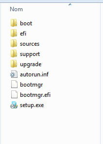Contenu d'une clé usb iso Win7 "idem pour win8 et win10".