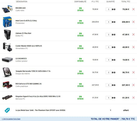 Salut ^^ Un intel core i5 4690K est orienté pour l'overclocking donc il a besoin de son ventirad par contre si tu n'overclock pas ne gaspille pas ton argent dans un 4690K et prends un 4570 (c'est ce que j'ai et il marche à merveille). Comme il consomme moins le ventirad Intel fourni avec le processeur est suffisant ^^ La carte mère c'est pareil, elle est plus orientée overclocking, j'ai une carte mère en B85 et pareille ça marche à merveille. Le disque dur que je t'ai pris tourne plus vite (7200tr/min ce qui fait qu'il va être plus performant) ^^ L'alim de 600W c'est trop, 500W c'est lrgement suffisant. Pour ce qui est e la carte graphique celle sur Top Achat est overclockée donc elle va consommer plus et plus chauffer, la mienne est une gamme gaming ce qui fait qu'elle a été étudiée pour ça mais honnêtement entre la top achat et la mienne tu peux prendre celle que tu veux :)