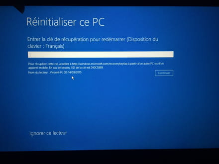 Donc, il faut une clé de récupération de BitLocker pour pouvoir réinitialiser le PC.