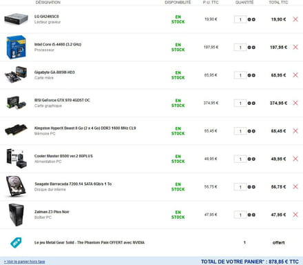désolé de poster 3 message d'un coup mais j'ai finis par trouver le PC que je voudrais avoir il est parfait https://secure.m.ldlc.com/basket/ voilà le lien je voudrais savoir si tout et compatible que si j'achète le tout je puise le monté qu'il ne manque rien et surtout si il a un sortie HDMI pour être connecter à ma T.V PS J'ai pas trouver l'os sur se site je l'est sur amazon à 45€ donc voilà au finale sa me reviendrais à 799,65 € TTC + la livraison (le prix et pas forcément très juste donc voilà j'attends votre avis en tout cas merci à tout le monde