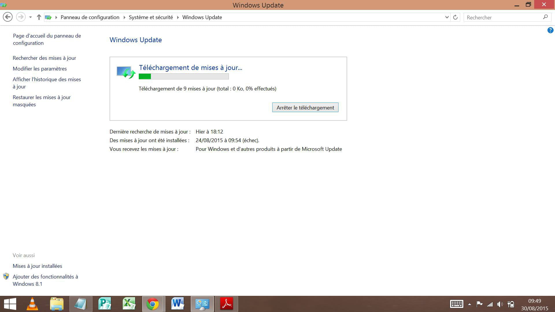 J'ai actuellement 1 GO de mises à jour qui ne veulent même pas se télécharger. Sans savoir vraiment si c'est lié aux MAJ, le PC est d'une lenteur terrible. C'est pour remédier à ce problème, via une installation (enfin ^^) des MAJ ou bien le résolution du problème de lenteur pour un autre moyen que je vous contact.