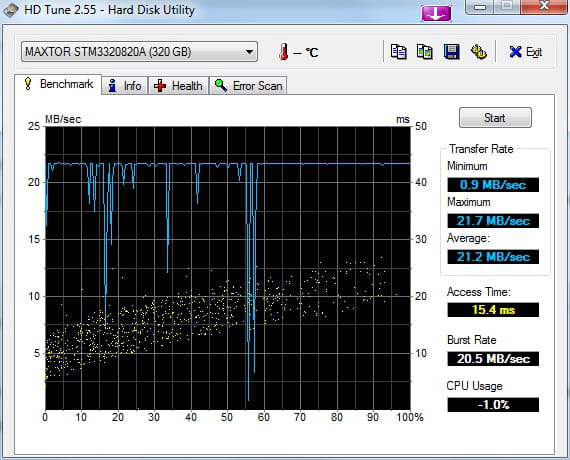 J'ai fait un test avec HD tune mais le programme ne me donne rien en Healt et bizarrement il ne me donne pas la t°.