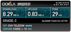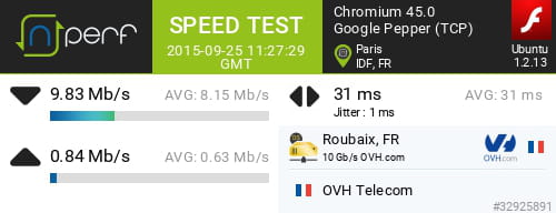 De plus, un test sur sur nperf.com donne les résultats suivants: