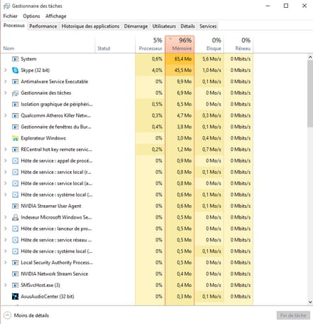 Mon problème est le suivant : je suis passé à Windows 10 depuis mi-août et depuis j'ai un gros problème qui survient quand j'utilise l'ordinateur pendant un petit moment. La mémoire vive est vite saturée et atteint les 100% alors que j'utilise quasiment rien ! Avant, sous Windows 7 je n'avais aucun souci ! J'ai 8 Go de mémoire vive, ce qui est amplement suffisant.