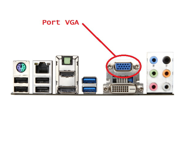 3- brancher le câble vidéo du moniteur sur le port VGA dédié à l'arrière du PC comme ici (si le moniteur peut être relié en VGA):