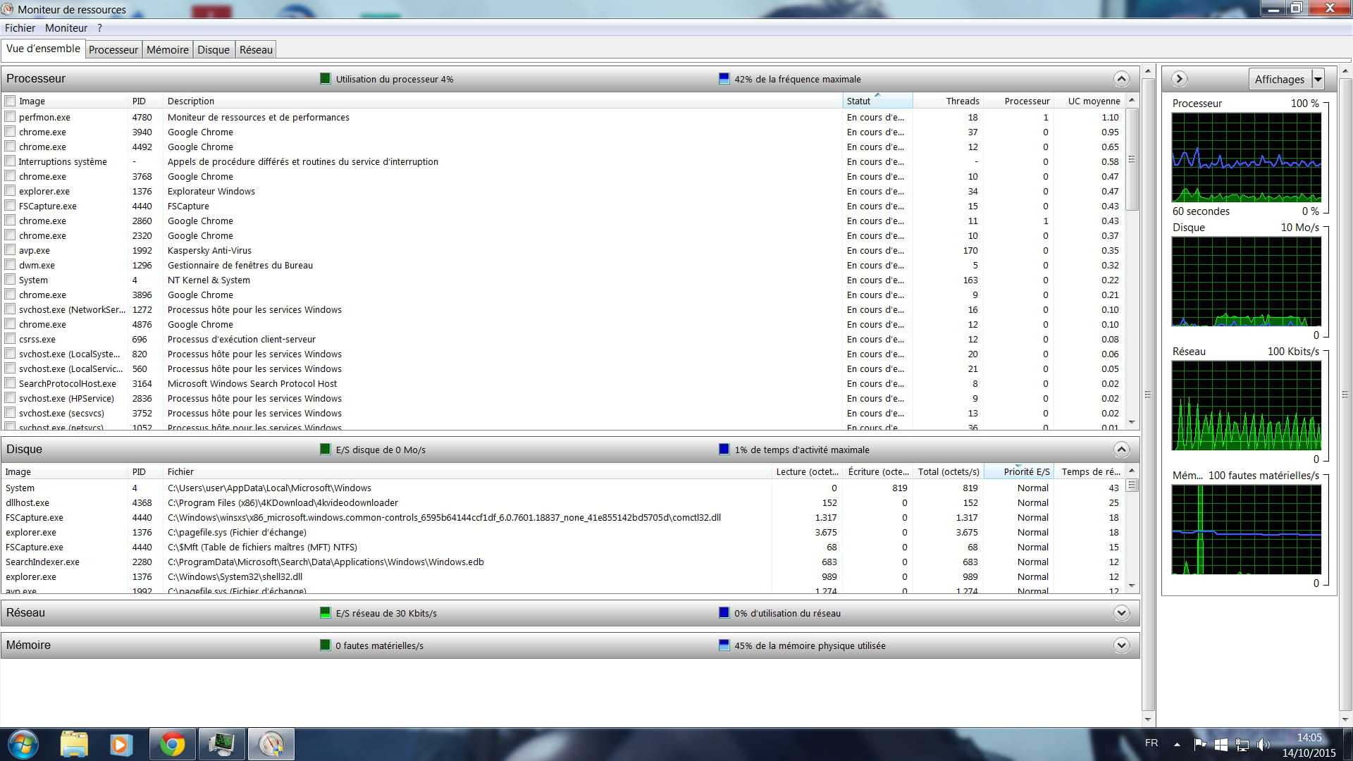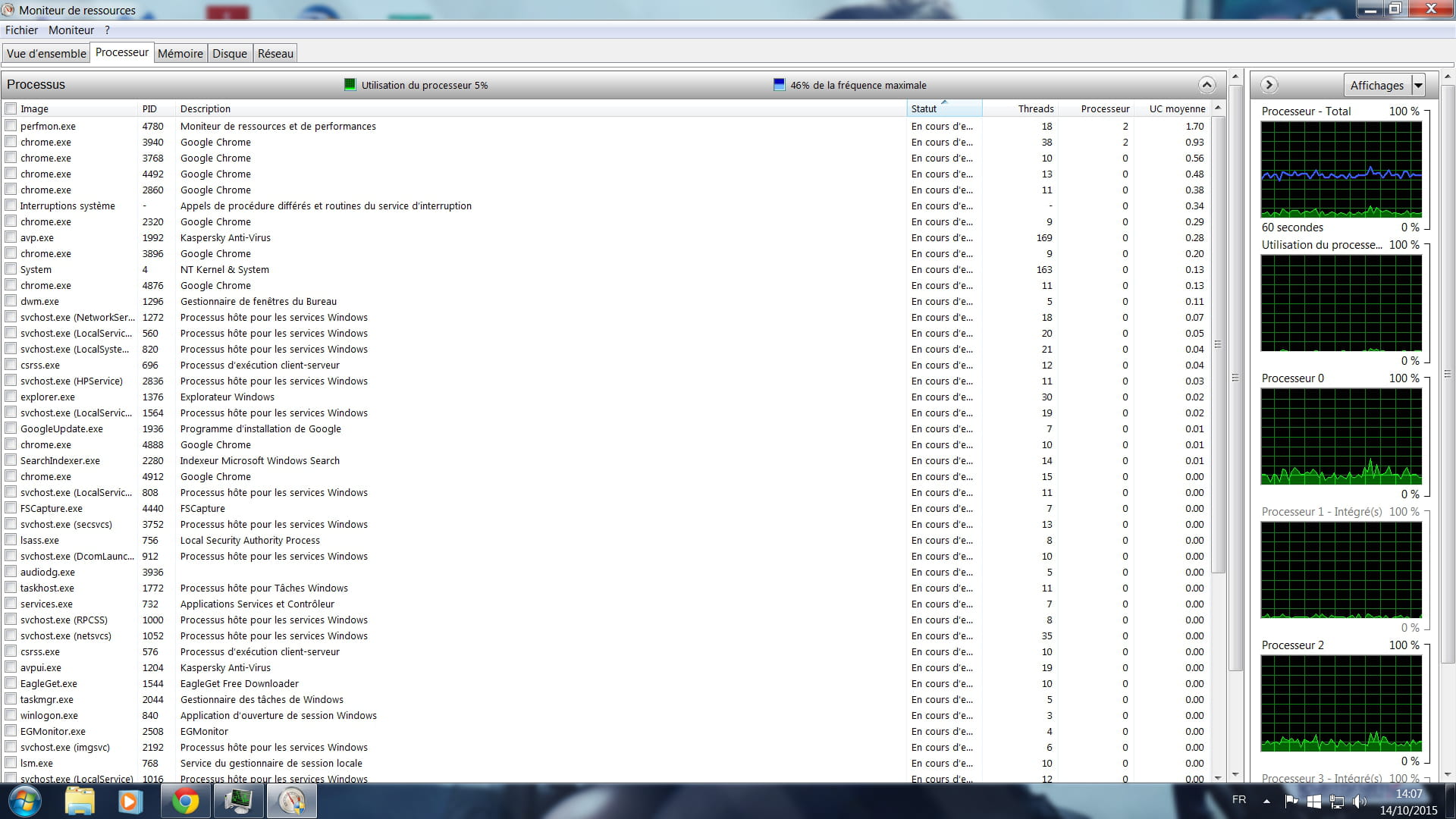 Une capture d'écran du moniteur de ressources avec les processus triés par utilisation CPU serait pas mal.