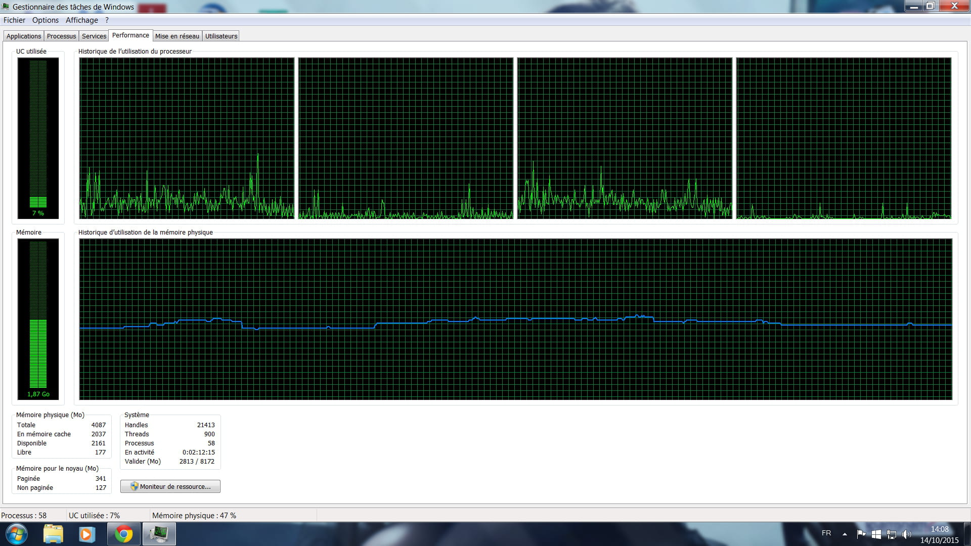 Sinon rien d'anormal, à part peut-être la courbe bleue sur la CPU.