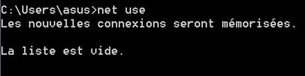 - utiliser net use sur cmd mais aucun résultat: