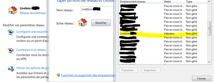- cliquer sur l'icône du réseau et tenter de "supprimer l'emplacement réseau" mais le bouton est grisé donc suppression impossible