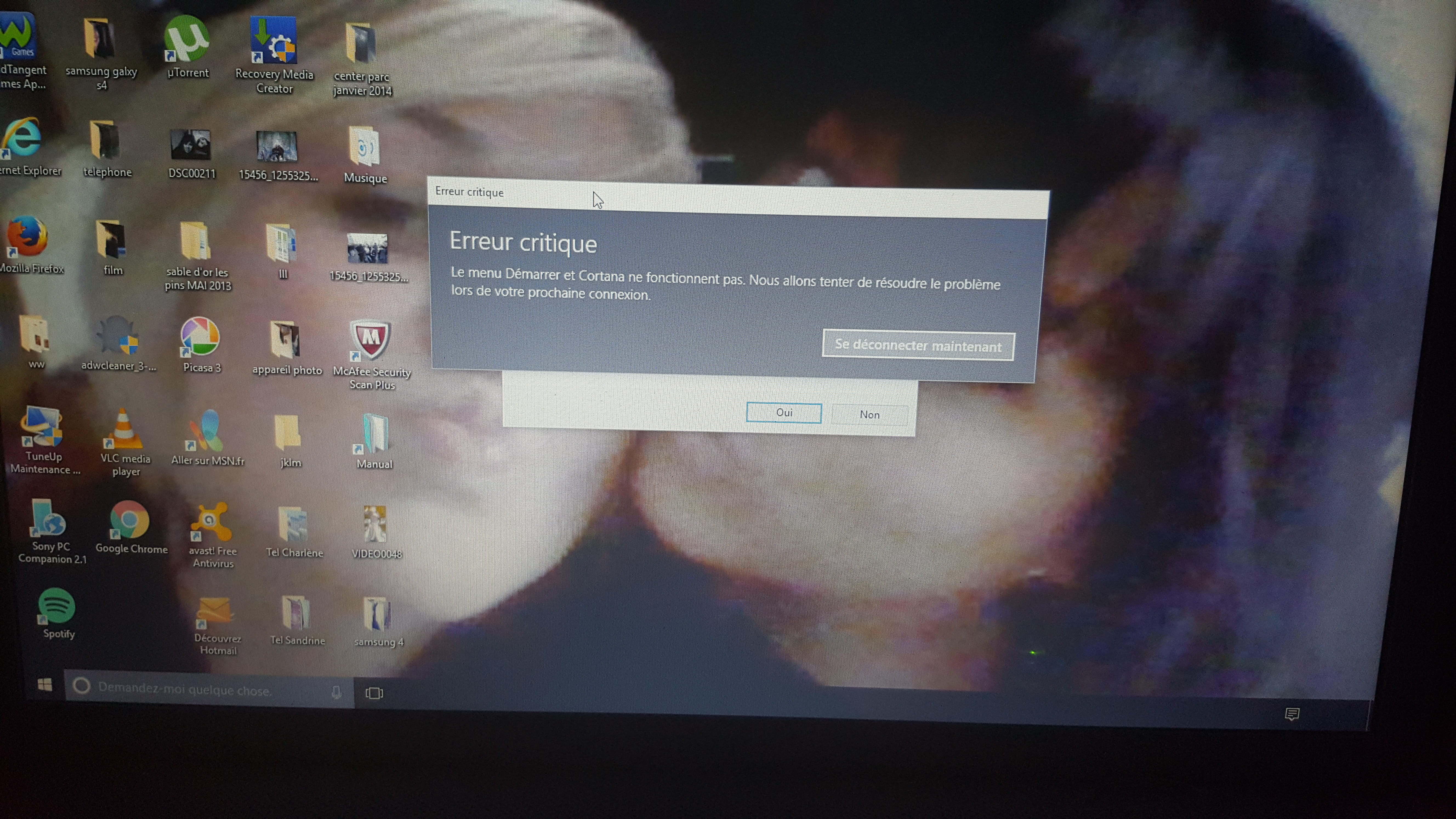 - Mon pc me met un message d'erreur critique