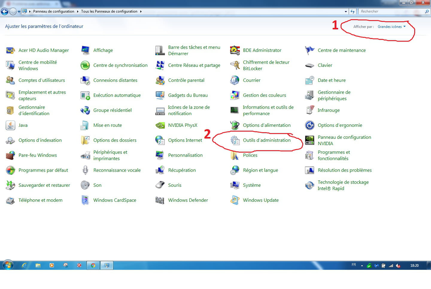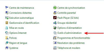 Dans le panneau de configuration je clique sur Système (mais j'ai pas sécurité) et je tombe pas sur Outils d'administration mais sur Informations système générales.