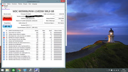 EDIT: @9h22, je me suis rendu compte de ce que la capture d'écran que tu as publiée (merci, @9h22 :) ) contient certaines données (le numéro de série du DD) que je ne laisserais pas en public. Si tu souhaites, tu pourrais le masquer ou signaler ce message aux administrateurs du Forum pour qu'ils interviennent (si sa modification reste impossible).