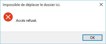 Mais maintenant quand je veux le redéplacer vers son chemin original, je suis la procédure; chemin par défaut, confirmation du déplacement...