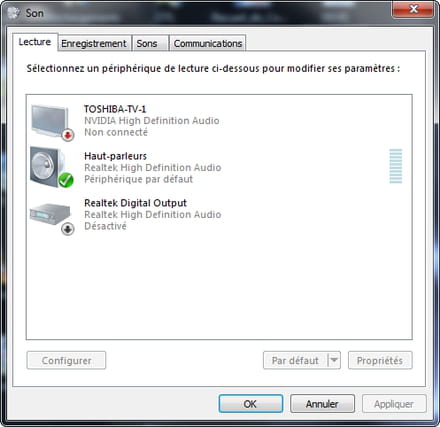Par rapport à ma config (issu du logiciel Everest) j'ai deux cartes audio (je ne sais pas si c'est normal) de marques différentes : ATI Radeon HDMI @ ATI Radeon HD 2600 - High Definition Audio Controller et SigmaTel STAC9271D @ Intel 82801HBM ICH8M - High Definition Audio Controller. J'ai windows 7 pro 64bt.