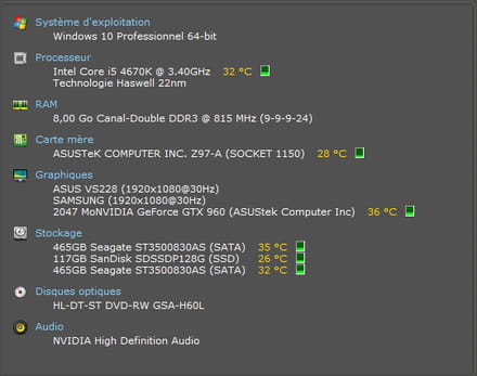 J'espère que l'un d'entre vous sera me venir en aide car là je sature complet. Mon PC est neuf je viens de le monter (Mai) avec une bonne alim, bonne carte mère, processeur i5 etc ...