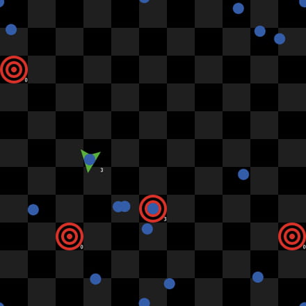 La flèche verte c'est le robot, sur l'image il porte 3 billes et les emmènes dans un "panier" rouge (on en voit un autre qui contient déjà 3 billes).