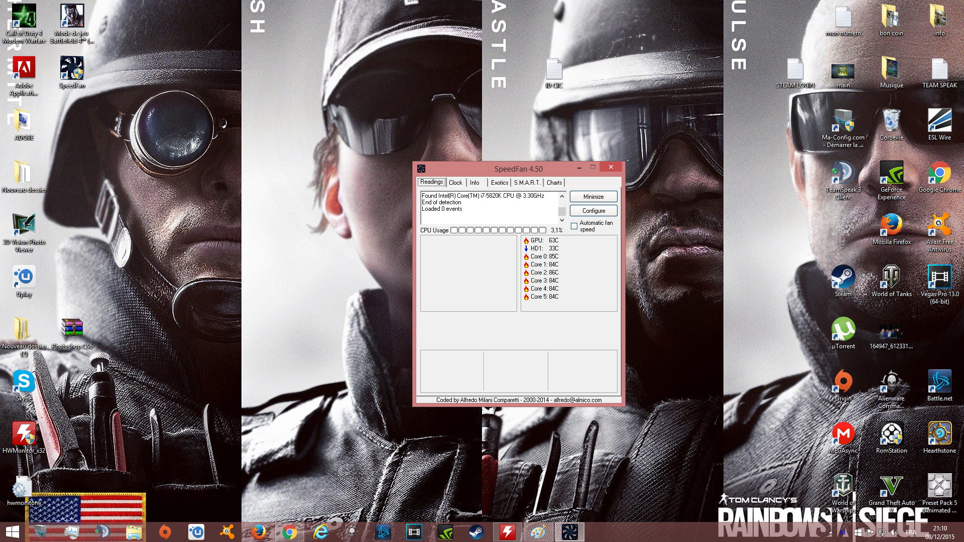 Attend, pour SpeedFan c'est en °C ? Parce que si c'est le cas la GPU est extrêmement chaude ! Après essayez de minimiser le nombre de logiciels ouverts en même temps (petits icônes de flèche du haut dans la barre des tâches ils sont tous dedans).