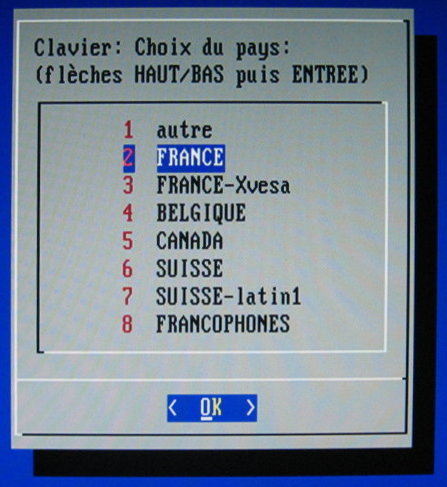 *Pratiquement tout est preregle, sauf la langue a changer avec les fleches du clavier, appuyes sur entree chaque fois que c'est demande. Pas besoin d'installation, ne pas modifier l'option.