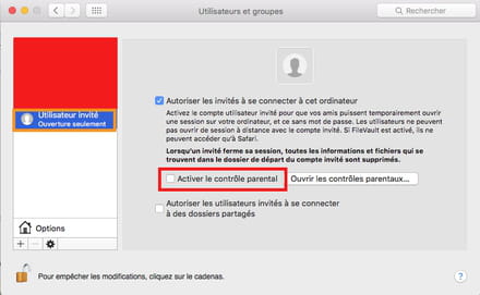 dans les Préférences système, désactiver l'autorisation d'utilisateur Invité