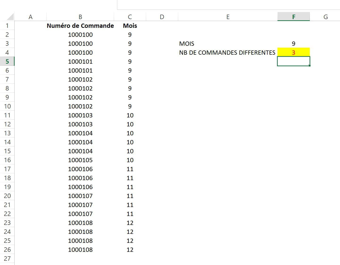 Petite question: Dans le fichier ci joint, j'aimerais savoir combien j'ai de commandes différentes chaque mois.