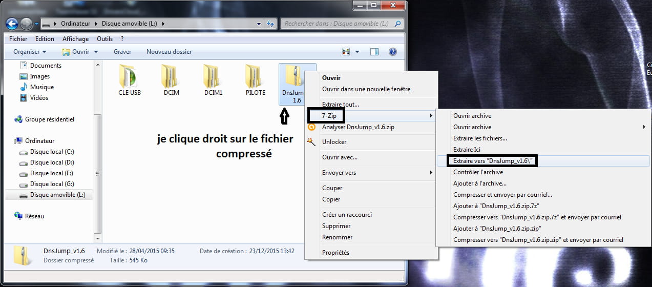 J'ai bien fais comme tu m'as dis, mais les fichiers ne sont toujours pas décompréssés sur ma clé. Mais au lieu de faire extraire vers , j'ai fais extraire les fichiers et apres j'ai choisis ma clé usb. Je pense que a vient de ma clé