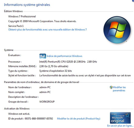 De 1 Go de mémoire vive pour la version 32-bit et 2 Go pour la déclinaison 64-bits
