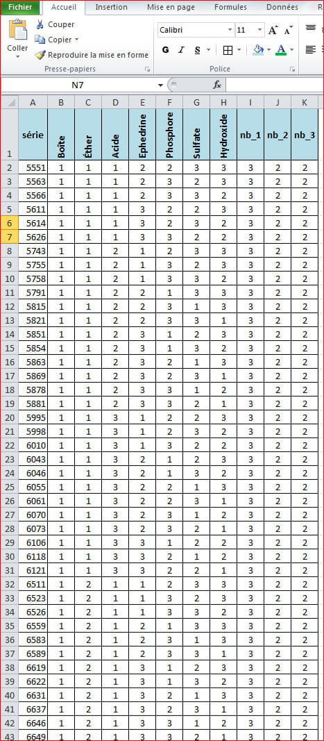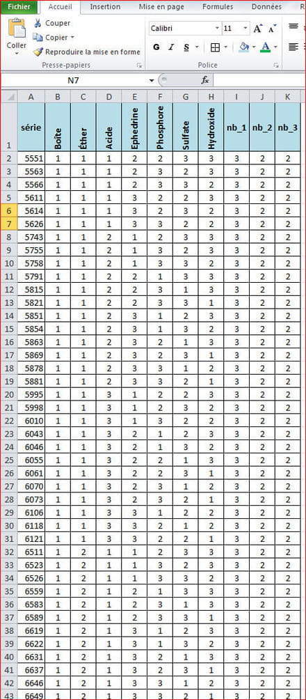 3) tu sépares chaque chiffre du nombre en base 4 (tu as donc 7 cellules contenant des 0, 1, 2, 3 en regard de chaque nombre base 10 de la série).