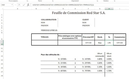Je dois créer un tableau avec des tranches de commissions automatiques qui apparaissent selon la sélection oui ou non. Pour la première partie avec les calculs automatiques pas de souci mais quand il s'agit de pouvoir sélectionner selon un choix, c'est là que ça se gâte.
