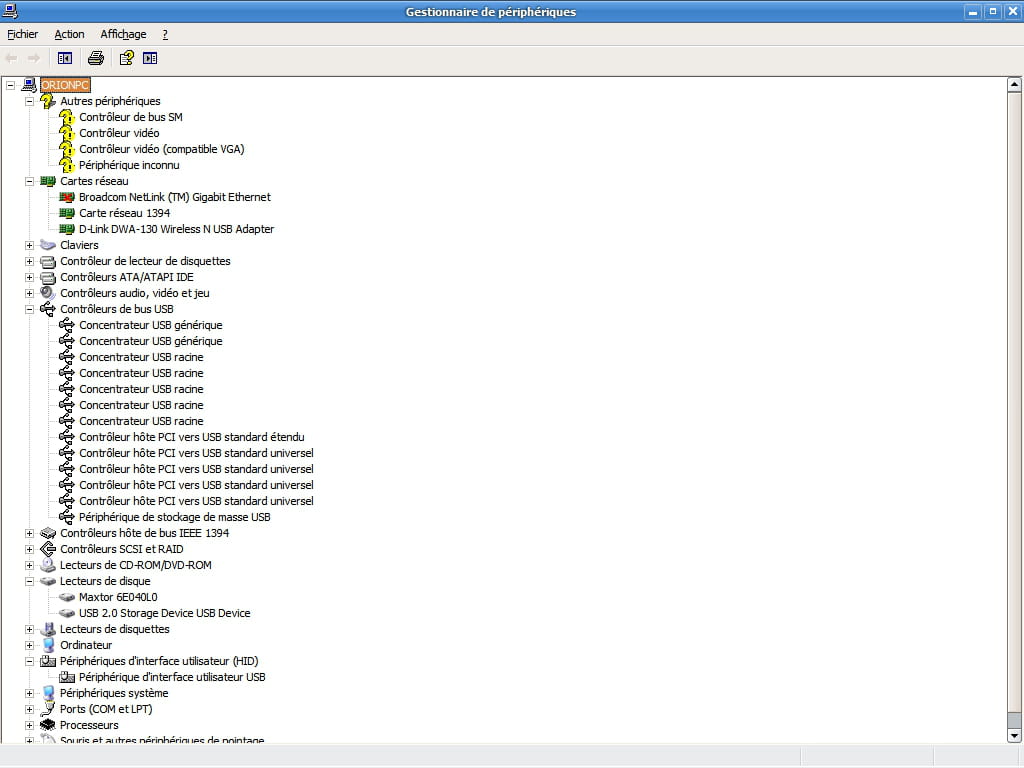 -Si tu débranches ce DD, as tu toujours des points jaunes dans le gestionnaire de périphériques?