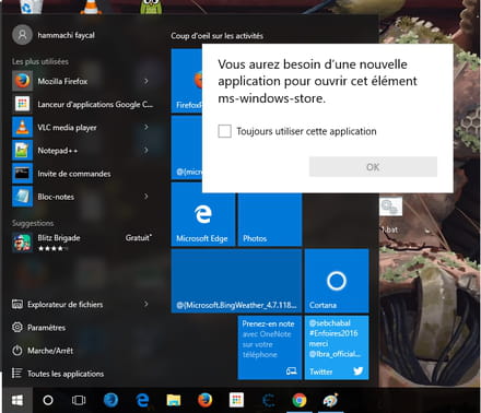 les application lie au Windows stor ne fonction plus et affiche un message d'erreur