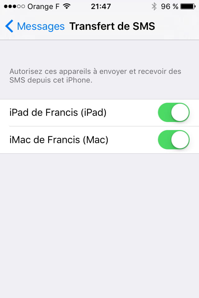 Quand je vais dans la config rien n'est en vert et quand je veux activer l'iphone me demande un code qui doit s'afficher sur mac et qui ne s'affiche pas.
