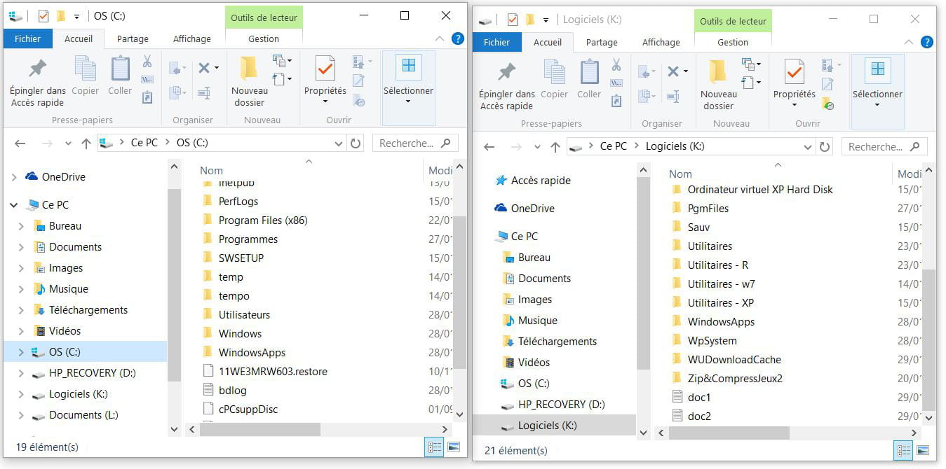 Les disques logique K et L ont été créés pour bien séparer l'OS Windows sur C: