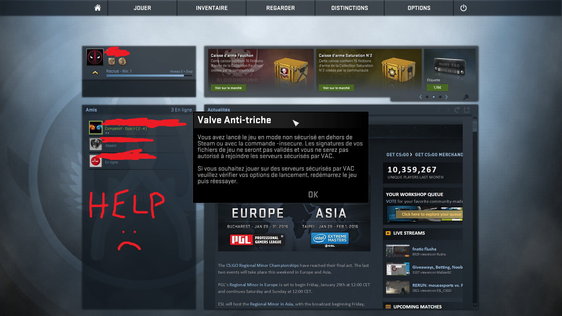 - Problème avec le Valve Anti-Cheat sur CS:GO