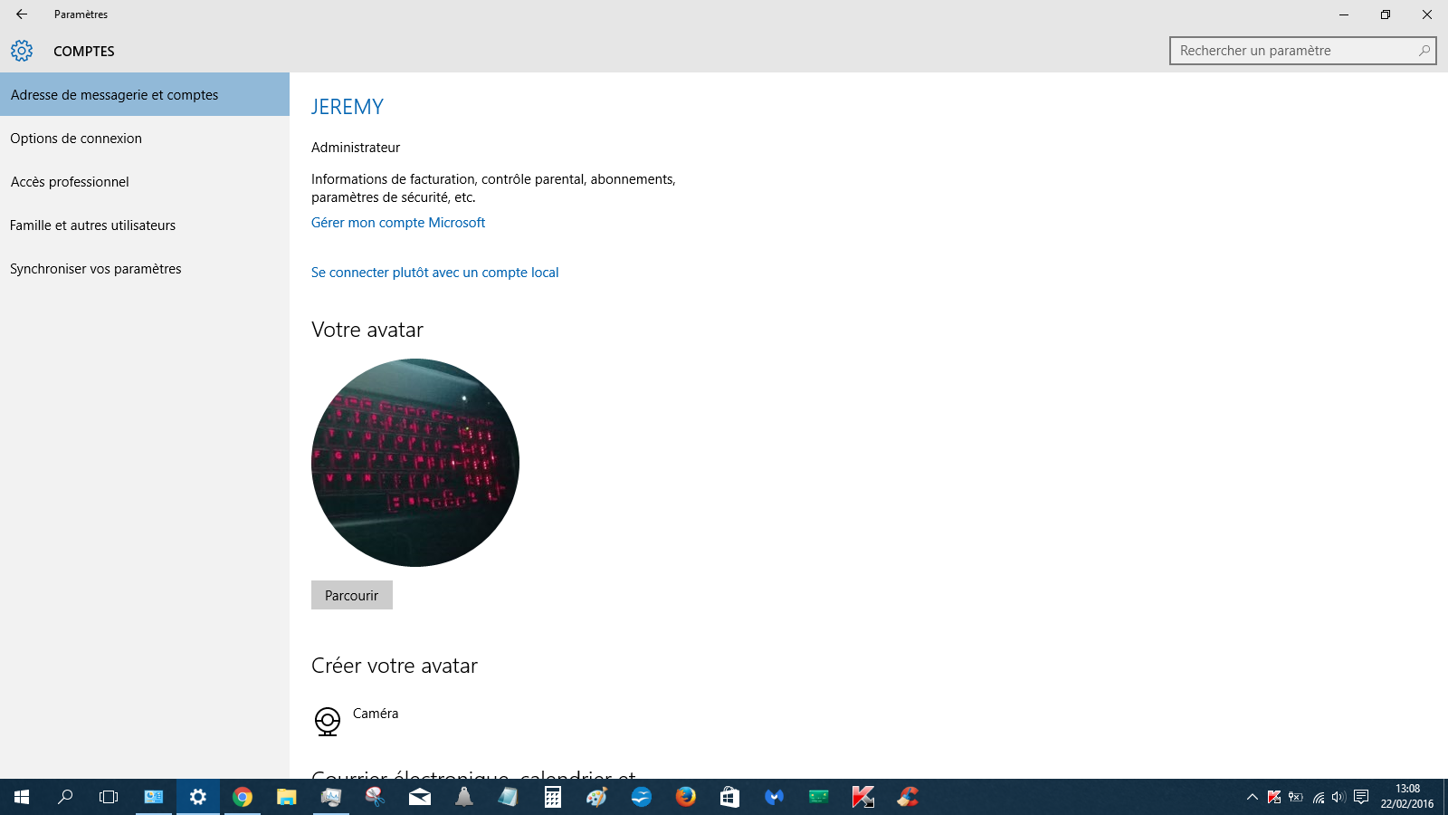 Démarrer > Paramètres > Comptes, aucun changement possible ça veut dire que t'as ça comme choix de paramètres .???