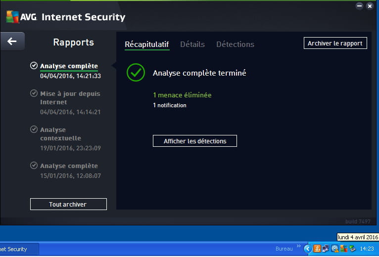 Comme j'ai AVG d'installé sur mon PC j'ai d'abord lancé une recherche avec lui et il n'a rien trouvé ( photo)