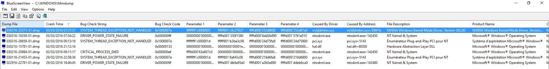 J'ai bien installé bluescreenview et j'ai pu ouvrir la ligne concernant mon BSOD.