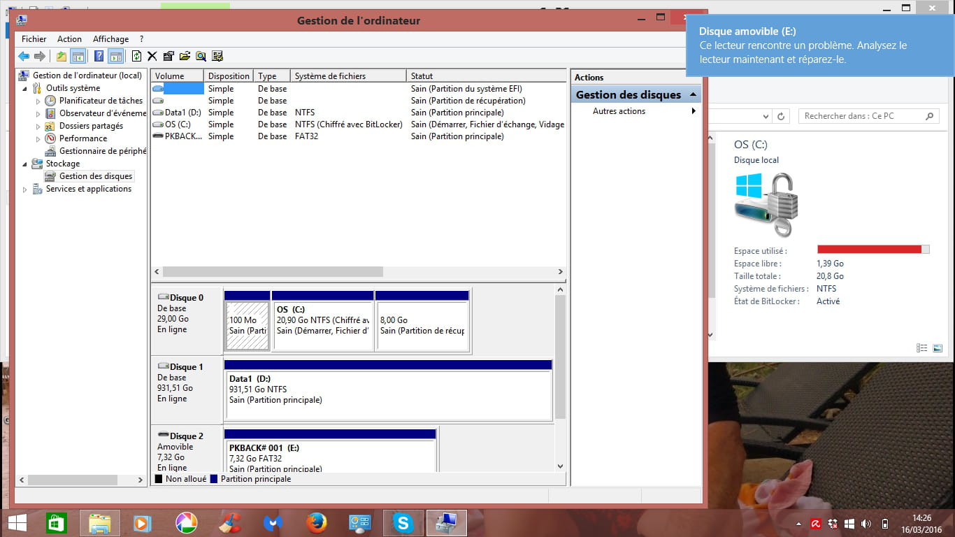 C'est bien ce que je te disais, tu as un DD de 1 To, et une mémoire flash de 32 Go, et W8.1 est installé sur ce dernier, il y a surement encore en plus une partition Recovery et plusieurs autres petites partitions pour l'UEFI et les fichiers de démarrage.