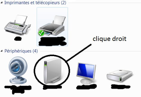 Déjà, va dans Panneau de configuration > Matériel et Audio > Périphérique et imprimante et là, suis mon image :