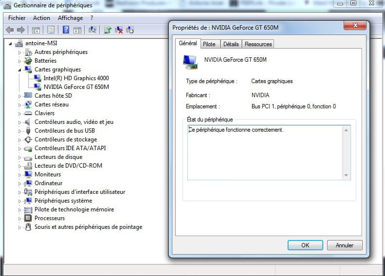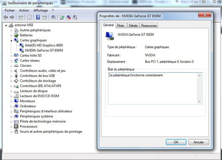 alors voilà, quand je joue aux jeux vidéo mon jeu tourne qu'avec très peut de FPS, j'ai vite compris pourquoi : la carte graphique utilisé est maintenant mon processeur. j'ai regardé dans le gestionnaire de périphérique windows et la carte est pourtant activé :