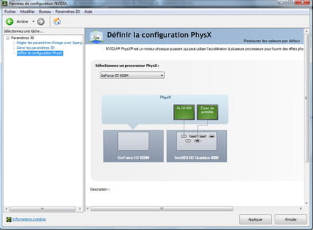 Vérifie dans le panneau de configuration nVidia que le jeu se lance bien sur la carte graphique et non sur la partie graphique intégrée au processeur.