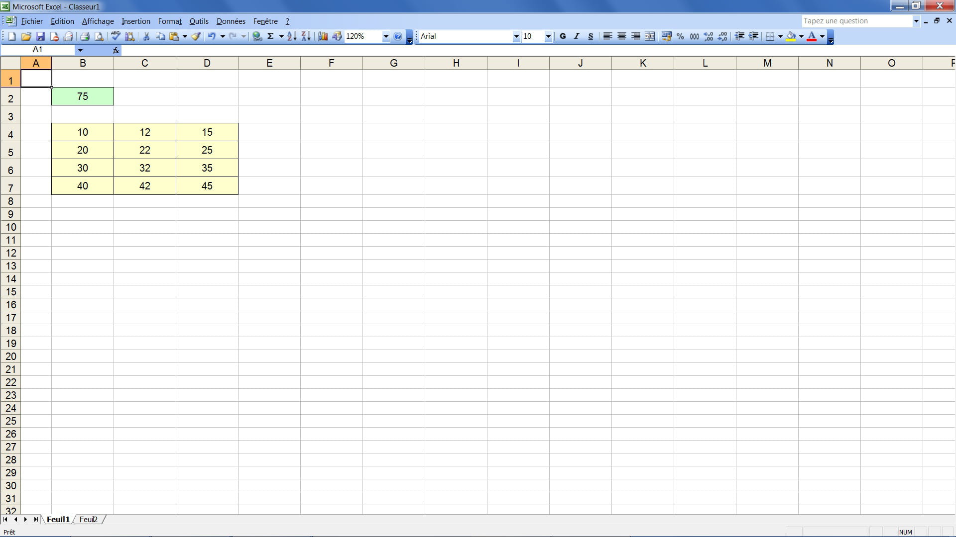 Pour cet exemple, tu dois avoir un classeur Excel avec 2 feuilles de calcul. Pour ces 2 feuilles, fais ceci :